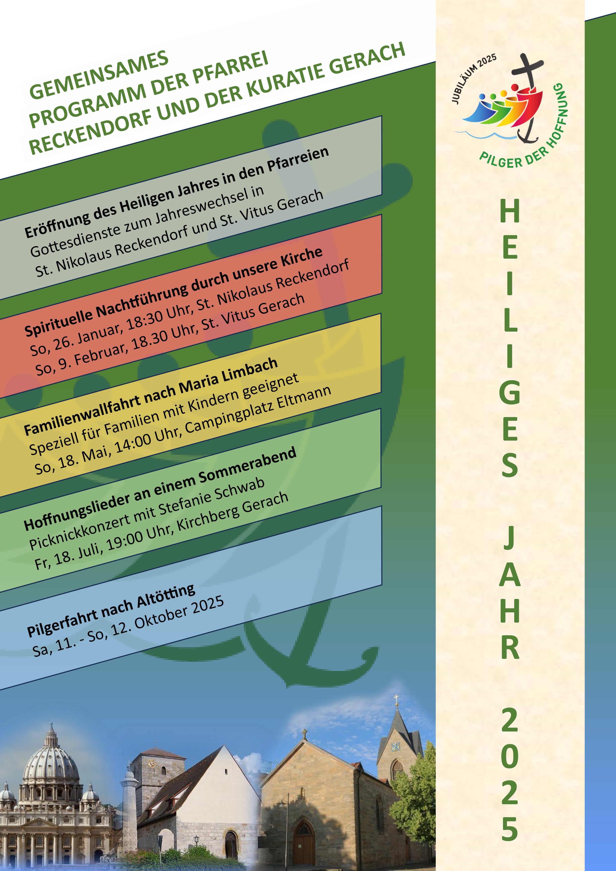 Mit dem Fest der Heiligen Familie am 28. Dezember 2025 ging das Heilige Jahr in den Diözesen und somit auch in unserer Pfarreiengemeinschaft zu Ende. Das Heilige Jahr war Anlass für die Gemeindeteams aus Reckendorf und Gerach für eine neue Zusammenarbeit. So gab es übers Jahr verteilt ein reichhaltiges, gemeinsames Programm.