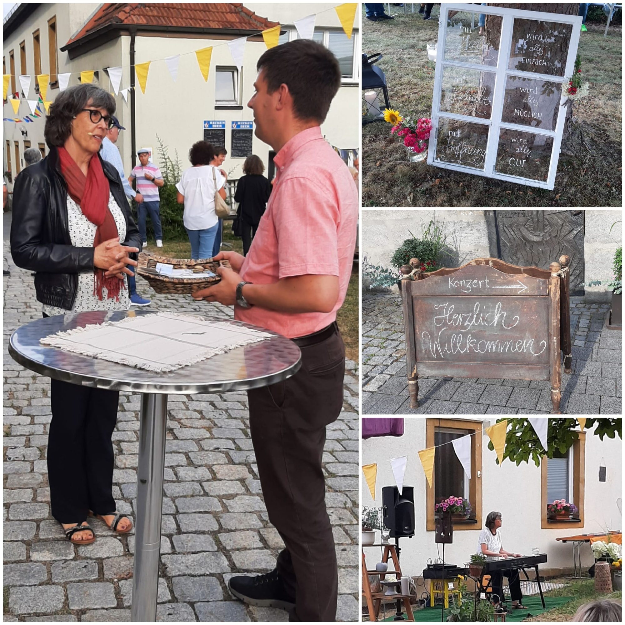 Perfektes Sommerwetter und ein geschmackvoll und einladend dekorierter Kirchenumgriff luden im Juli zu einem Picknickkonzert mit Stefanie Schwab nach Gerach ein. Unter dem Motto „Hoffnungslieder an einem Sommerabend“ erklangen tiefgründige und nachdenkliche Lieder der Musikerin und Liedermacherin. Das Ambiente, die kleinen Köstlichkeiten und natürlich die Lieder lassen den Abend noch lange in guter Erinnerung bleiben.