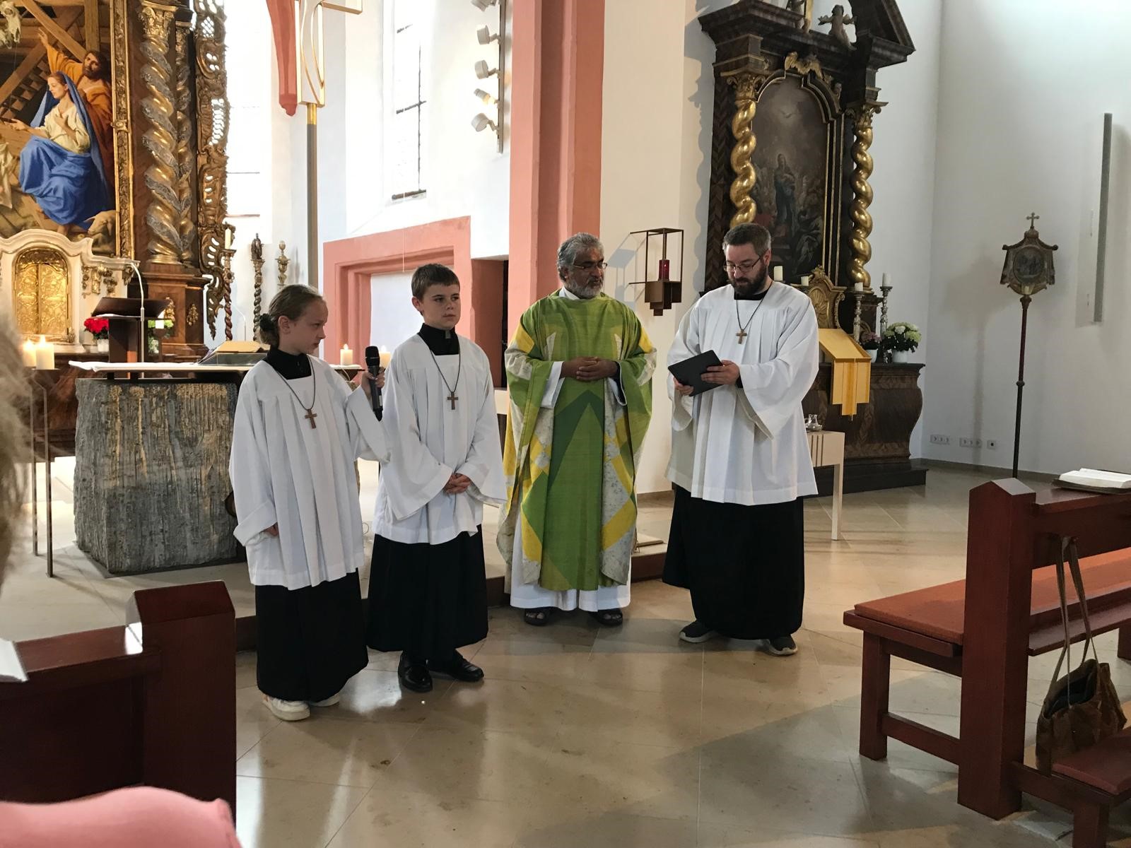 Pfarrer Vincent freute sich, dass in der Sonntagsmesse am vergangenen Wochenende zwei von den letztjährigen Kommunionkindern, die seitdem schon fleißig ministrierten, nun offiziell als neue Ministranten in der Pfarrei Baunach durch ihn und dem Leiter der Minis Dominic Meinhof eingeführt werden konnten.