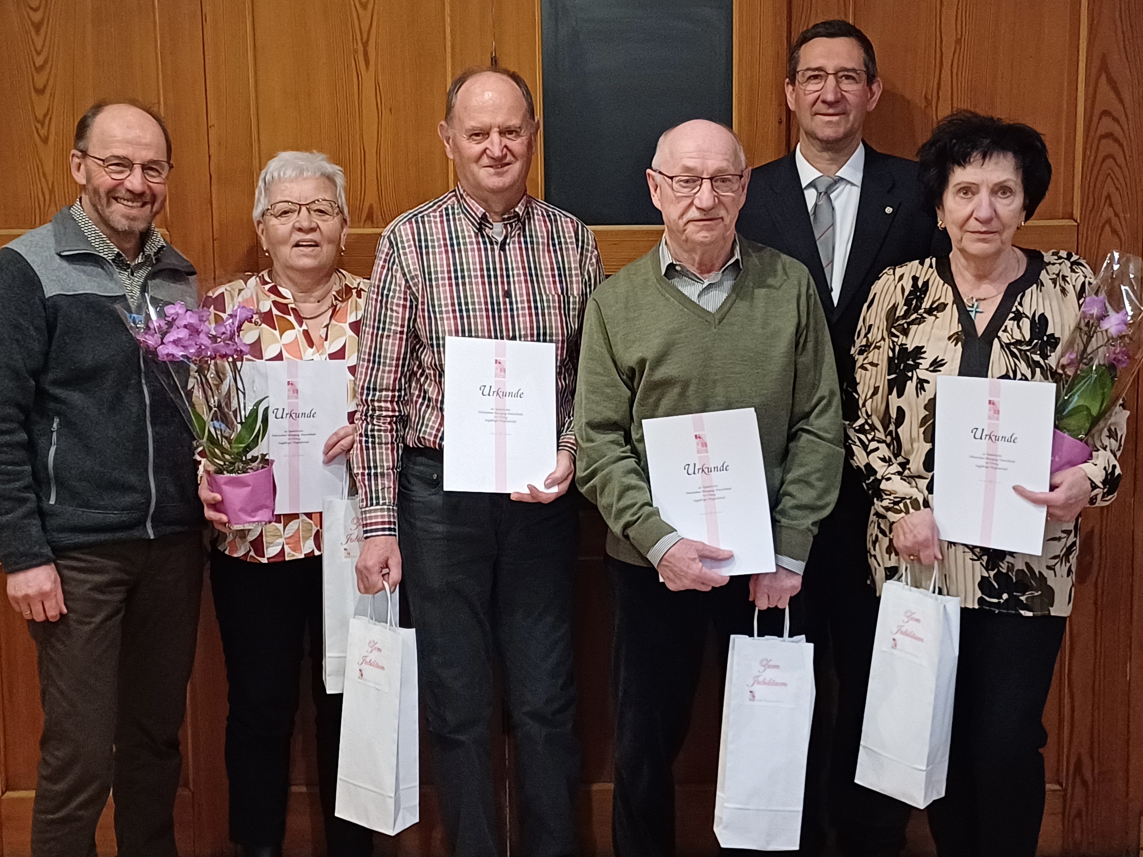 Für 25-jährige Vereinszugehörigkeit standen in diesem Jahr die Mitglieder Dagmar und Winfried Schwengler sowie Gertraud und Ludwig Schwengler und für 40-jährige Mitgliedschaft unsere Mitglieder Edeltraud und Michael Güthlein im Programm.